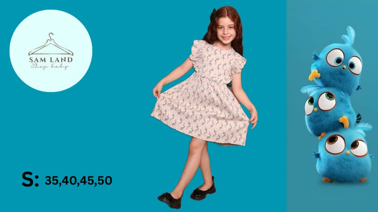سارافن گلدار دخترانه جنس نخی شست شده کیفیت عالی یقه گرد پشت زیپ خور
