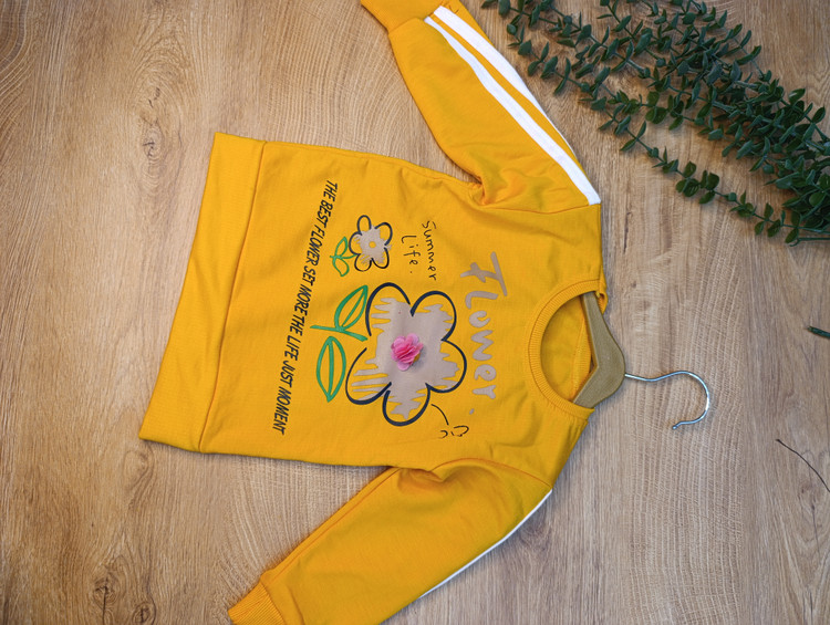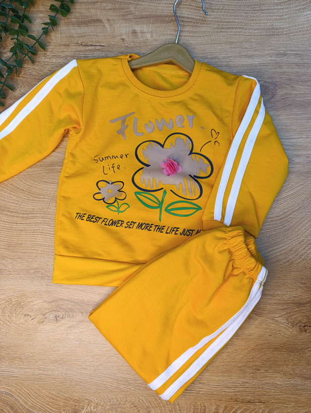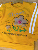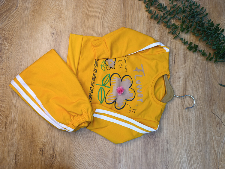 بلوز شلوار دخترانه دو خط گل دار جنس نخ پنبه یک رو نرم و لطیف یقه گرد نوار دوزی شده